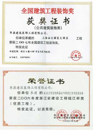 华鼎公司成立以来,依靠雄厚的技术力量,先后完成国内外各类项目1000多项,如宾馆酒店、商务写字楼、展览场馆、别墅、园林、各类娱乐休闲场所及市政设施配套工程。1988年与日本鹿岛建设株式会社合作,完成了上海商城(波特曼大酒店)的装饰项目,造价逾2000万美元。公司先后承建或参建的浙江世界贸易中心(五星级)(获浙江钱江杯)、大连海景大酒店(五星级)、上海兰生酒店(四星级)、全国通信贸易产业大厦(四星级)(获上海市白玉兰奖)、上海广播大厦(获国家鲁班奖)、上海八万人体育场(优良工程)、上海兆丰世贸大厦(获上海市白玉兰奖)、宁波广电大厦(获浙江钱江杯)、上海港汇山客运站综合大楼(优良工程)、上海市委党校、上海浦东国际机场、5A智能办公大楼工商银行巨金大厦(获上海市白玉兰奖)、大连21世纪大酒店(四星级)、上海万豪虹桥大酒店(五星级)、杭州东方信苑大酒店(五星级)、红塔大酒店(五星级)、大连金石国际会议中心(五星级)、工商银行金山支行、上海新世界股份公司、天津保税区国际交流中心、上海航空医疗培训中心(获上海市优质工程白玉兰奖)、徐汇科技馆、上海歌剧院主楼、上海市公安局指挥中心综合大楼、黑龙江广电大楼、上海电力公司综合楼大堂、上海国际赛车场车队生活区、上海同济汽车学院教育与行政楼、沈阳商业大厦、温州市行政中心西楼、静安现代产业大厦、浦东世纪花园、浦东世茂湖滨花园、世茂滨江花园6号楼、大连周水子国际机场、沈阳宾馆、新世界综合消费圈幕墙装饰、上海江桥大酒店改扩建工程、九间堂别墅会所主楼装饰工程、上海樱花度假村改扩建工程、上海银行大厦、上海农村商业银行、上海轨道交通8#线、同济汽车学院汽车展示中心与俱乐部、教学与行政楼(荣获2004年度上海市优质工程白玉兰奖)、浙一医院门诊楼荣获2005年度全国建筑装饰奖、温州市行政中心工程荣获2005年度浙江省优秀建筑装饰工程奖、黑龙江广播电视中心工程荣获2005年度国家优质工程银质奖等工程均以优质、高速获得各界好评。 |