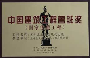 苏州工业园区现代大厦工程建筑总面积98220平方米,为大型综合性、高智能化建筑,是苏州工业园区二区核心区域范围内的标志性建筑。该工程设计新颖、现代。由上海蓝天房屋装饰工程有限公司承建的二标段、四标段装饰工程,装饰面积达47030平方米,造价达7100万元。工程于2005年6月26日开工,于2006年1月18日竣工。蓝天公司在节能与环保方面大胆创新,不但保证了工程质量而且美化了装饰效果,得到了原创设计和业主的认可。2007年荣获中国建筑工程鲁班奖和全国建筑工程装饰奖。