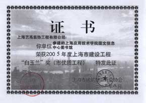 上海艺高装饰工程有限公司的经营范围;建筑装饰、水电、通风、设备安装的设计、施工、维修及与工程有关的工程结构的设计与施工;本公司自组建开始就聚集了一批对装饰装修设计和装饰装修施工有一定设计、施工经验的工程技术人员、技术工人和优秀的企业管理者的团队;其中有高、中级专业技术职称的工程技术人员和一、二级项目经理占相当的比例。团队十多年来在上级和社会各阶层朋友的关心下和支持下,不断搏击和努力,在社会上具有一定的信誉和知名度;完成了一批获得的建筑装饰装修作品;他们是1994年获“白玉兰”奖、1995年获“鲁班”奖的上海虹桥友谊商城;1998年获“鲁班”奖、“白玉兰”奖的上海建工锦江宾馆;1999年获“鲁班”奖、“白玉兰”奖的上海市第一百货公司东楼;1999年获“白玉兰”奖、2000年获“鲁班”奖的上海城市规划展示馆;此外获得“白玉兰”奖的项目是上海瑞安广场的太平洋百货淮海店、上海浦东商品交易所、上海虹口体育中心、仁济医院二期外科病房大楼、上海应用技术学院图书馆及获得2000年“建设杯”、2001年获得建工集团精品工程的上海连卡佛百货;2003年获“金石”奖、2002年获建工集团精品工程的上海浦东民航大厦(华美达大酒店)、上海张江体育休闲中心;2004年获“黄浦杯”的上海黄浦区机关政府办公楼;2005年获“白玉兰”奖的上海仁济医院二期外科病房大楼;2005年获“白玉兰”奖的上海应用技术学院图文信息中心;2006年获“白玉兰”、“精品工程”奖的上海钻石电气科研中心;2007年获“市金石”、“鲁班”奖的上海钻石电气科研中心;2007年获“精品工程”奖的上海地铁运营公司办公大楼;连续10年获得“上海市信得过建筑装饰企业”等荣誉。