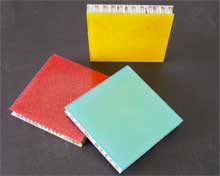 庆华公司专业生产加工各种蜂巢板,产品种类较多。选用各种金属与非金属材料作为面材,内芯采用高标准防锈铝蜂巢或客户指定的其他特殊材质蜂巢。成品板具有高刚度、高平整度、低密度、隔热、隔声、能完美地满足设计师对建筑造型的要求等特点,其中玻璃蜂巢板经上海建科院检测,U值可达1.1W/㎡K;庆华公司开发与生产加工的产品广泛应用于大厦帷幕墙、大型屋面、大型天花等重要建筑场所。
