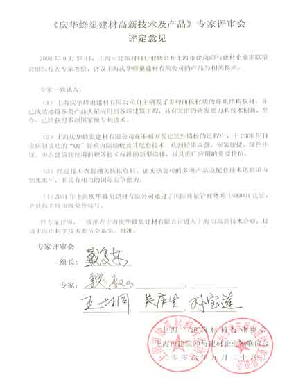 庆华蜂巢建材生产体系成立于1993年,隶属于香港庆华集团公司。专业设计、生产和销售建筑用铝蜂巢板。该生产体系初建时,获得世界蜂巢板制造鼻祖英国汽巴嘉基公司的极大支持,起点较高。至2007年12月止,庆华已积累了多年的铝蜂巢板生产经验,不断完善加工体系,努力开发出了各种以“后覆合技术”、“直接使用无需加工”等特征的庆华铝蜂巢板,我们作为国内该行业中的知名企业,向市场提供了高质量、高性价比的铝蜂巢板产品。到2007年12月为止已与远大集团、凌云集团、上海美特、上海科胜、江苏建伟、华东电脑、上海五冶、上海实业、上海住总金属结构件、澳门惠发建筑、日本清水建设、YKK、东芝电梯等大型公司合作,成功地为成都沙河体育中心、成都高新生活广场、上海汽车会展中心、武钢科技大厦、上海电信世界、松江大学城体育馆、松江大学城游泳馆、德隆战略总部、上海诺保中心、上海众多市级金融机构的电脑中心、山西晋城煤矿多功能报告厅、上海锦宝大厦、澳门威尼斯人大酒店、美国INTERNET公司洁净厂房等800多个项目并为其生产了各类蜂巢板,所生产的产品除供应国内各地外,还远销香港、澳门、日本、新加坡、马来西亚、澳大利亚、美国、英国等。 |