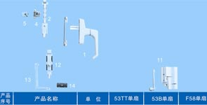 - 门窗配件:专业生产欧式23、20槽口高档铝型材门窗配件,及各种断热新型门窗配件。主要产品有:95TT、95SC、70TT、70SC、80TT、1078、1098、63TT、62TT、55TT、45DS、53SP、活动百叶窗、推拉、外开、内开、内开内倒、双平开门窗配件。